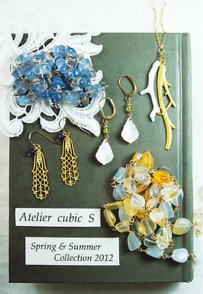 小粒で繊細なものや大振りでアクセントになるものなど、幅広いデザインで展開します。「汗をかく季節は金属が苦手」な方に向けて、リボンや糸を使ったネックレスもご用意します。いつもと少し違う、でもやっぱりcubic Sらしい新作に出会えるはずです。←というか、がんばります!