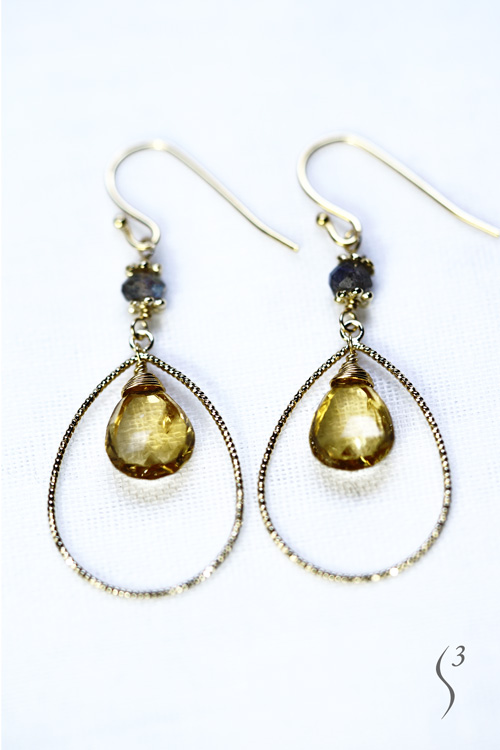 シトリンは色も透明感もしっかりあるので、キラキラのメタルパーツに負けません。