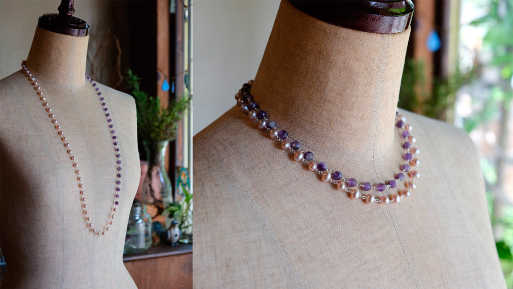 アメジストと淡水パールのロングネックレス