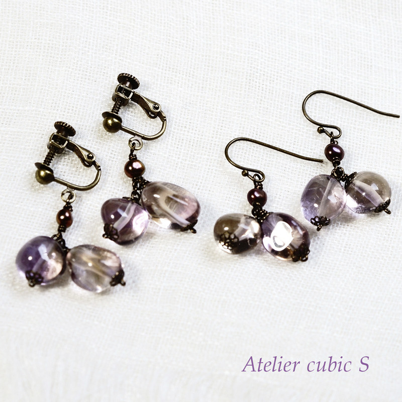 2021.11.27 アメトリンと淡水パールの耳飾り 作品のこと 以前にご紹介したネックレスと同じアメトリンを使っています。 アメトリンと言うよりもアメジストなものも入っていますので、個展では透かしてご覧下さいね。 動くとコツコツと心地よい音がします。 Post Share Hatena Pocket RSS feedly Pin it バルティックアンバーの耳飾り レモンクォーツとスモーキークォーツのバイカラー耳飾り 関連ブログ チェリーブロッサムアゲート ( 桜瑪瑙 )と 淡水パール のブレスレット スパイラルシェルネックレス ラブラドライトのピアス プレナイトの耳飾り チェリーブロッサムアゲートと淡水パールのネックレス シロツメクサ の耳飾り