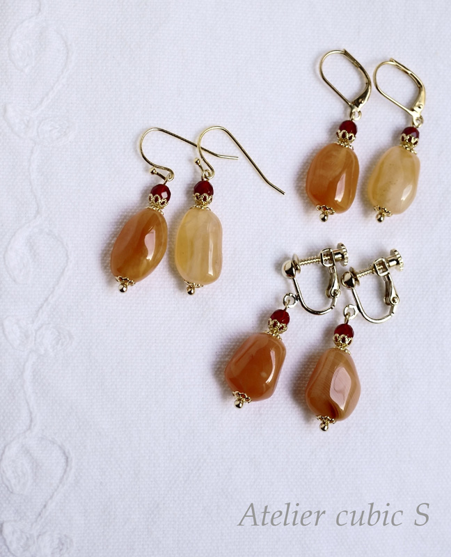 今回はオレンジボツワナアゲートと赤めのうの耳飾り