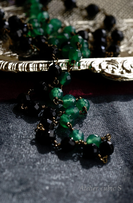 私がネックレスのタグに書く石名をどちらにするかは迷いました。結局グリーンオニキスと記載して、口頭で「昔で言うと緑瑪瑙です」とお伝えしています。