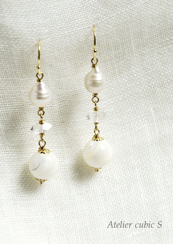 シェルはマットな白と艶のある白のマーブルなので、水晶やパールとの相性が良いです。
