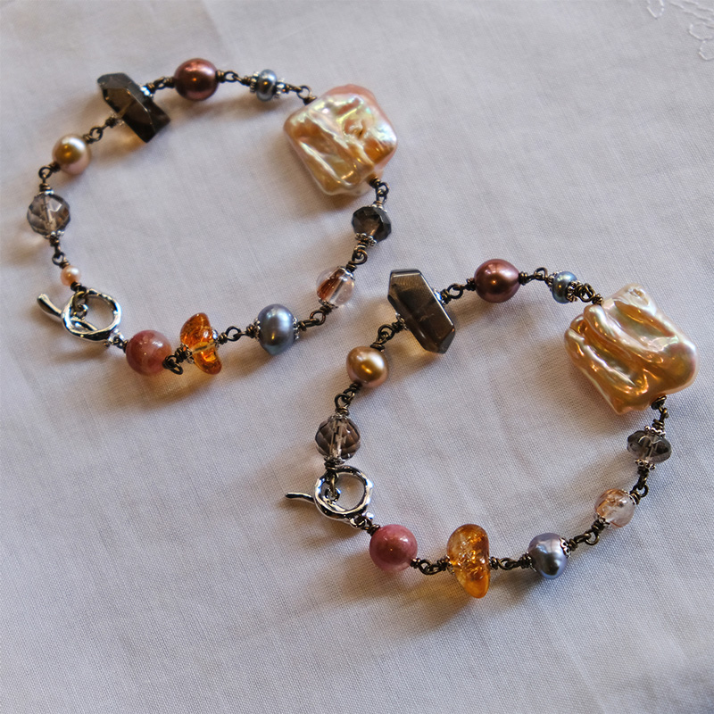 金具の横のピンクは水晶の中にロードナイトとガーネットが入っているらしいです。