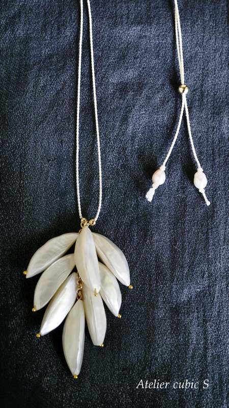 写真は南国の花のイメージで制作したシェルのネックレス。