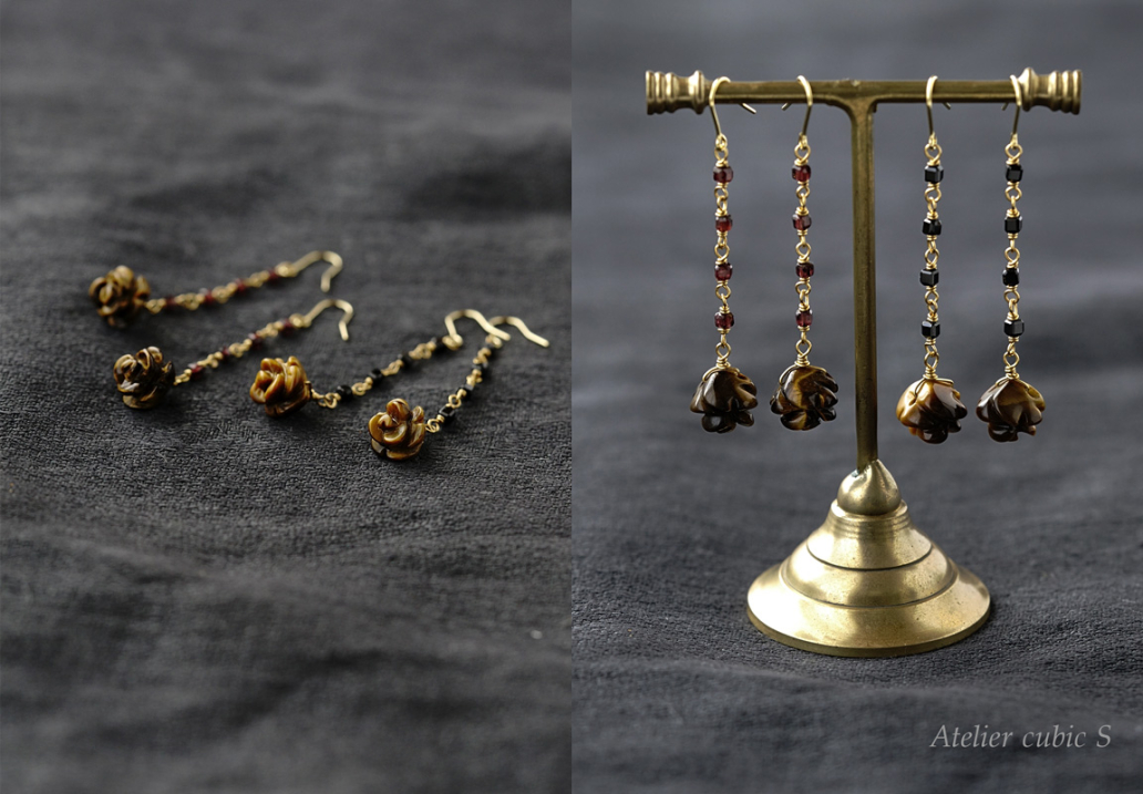 前回投稿のタイガーアイをシンプルに一粒だけ使ったこちらの耳飾り。