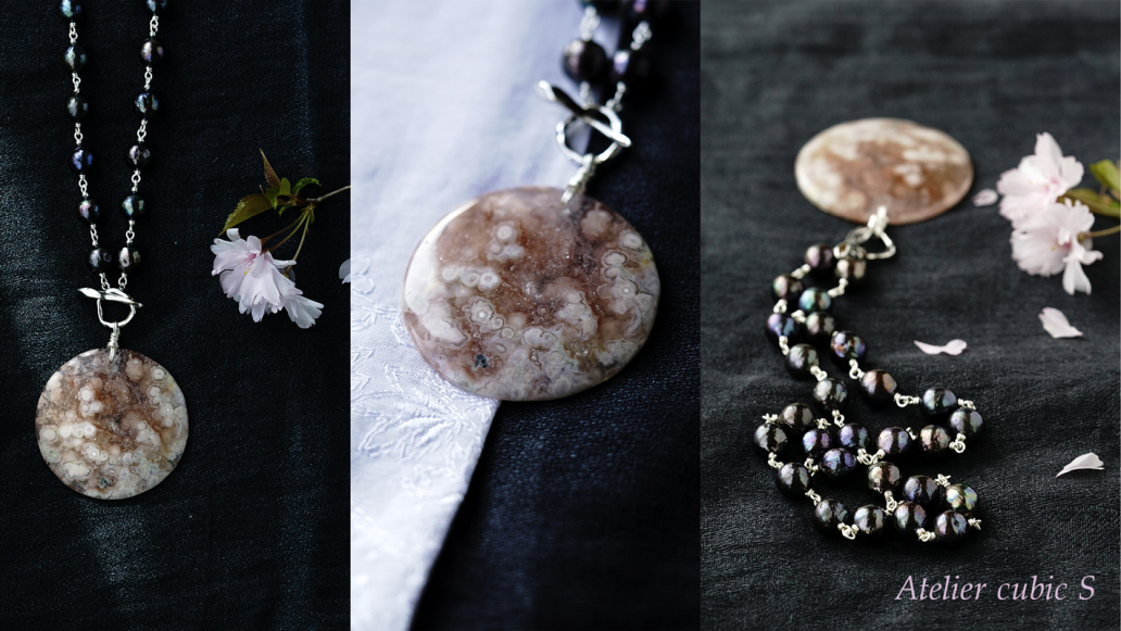 チェリーブロッサムアゲートと淡水パールのネックレス
