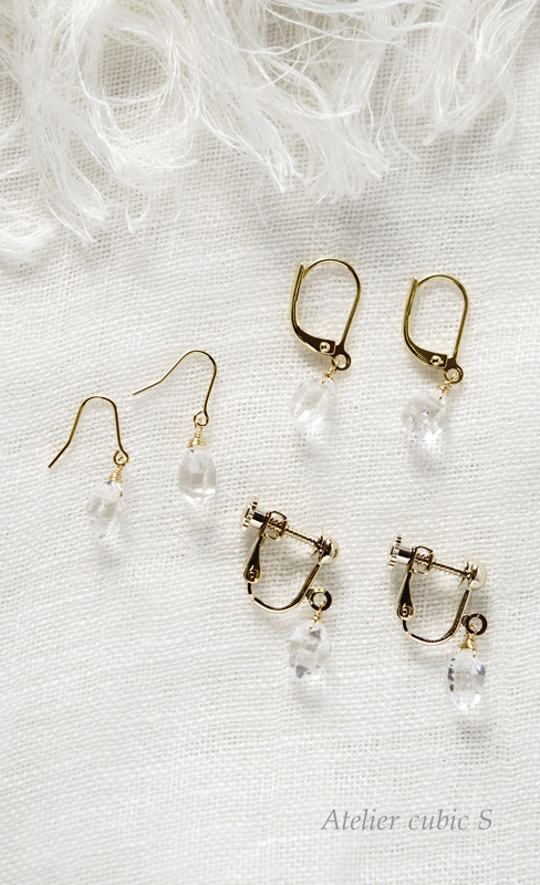 いつも使っているハーキマーよりもかなり大きな粒です。どうしても存在感のある大粒で耳飾りを作りたかったのです。沢山仕入れましたので、いつでもあります。ただし、形は様々。小さな粒が付いた子持ちみたいなものや、細長い物、コロンとした物など個体差があります。お気に入りが見つかったらその時はぜひお早めに。