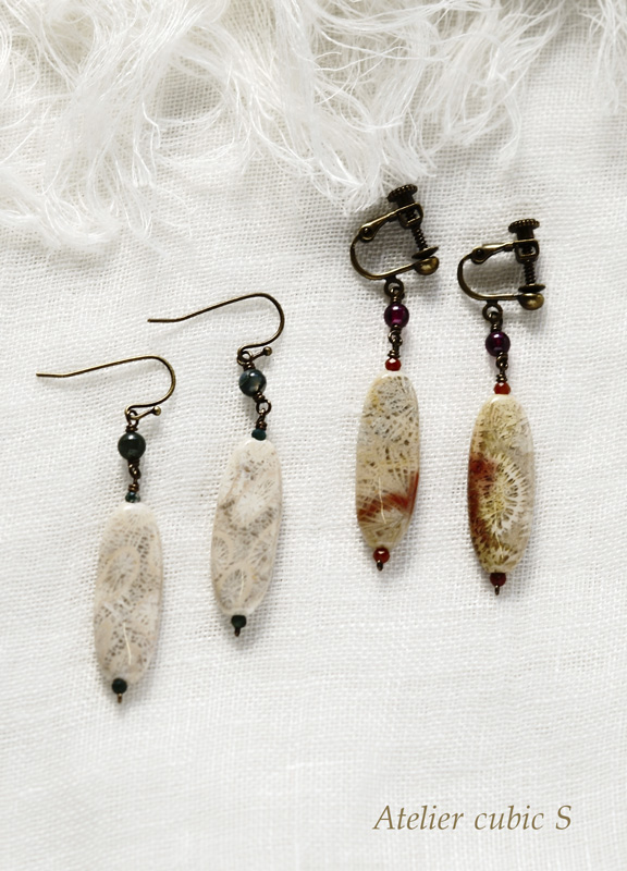 2023.11.26 フォシルコーラル の耳飾り 作品のこと フォシルコーラル( フォッシルコーラル )の色味によって、赤系とグリーン系の2色に作り分けました どりらも柄が面白いものだけをチョイスしたので、数点ずつです Post Share Hatena Pocket RSS feedly Pin it 個展最終日 個展終了 関連ブログ チェリーブロッサムアゲート ( 桜瑪瑙 )と 淡水パール のブレスレット スパイラルシェルネックレス ラブラドライトのピアス プレナイトの耳飾り チェリーブロッサムアゲートと淡水パールのネックレス シロツメクサ の耳飾り