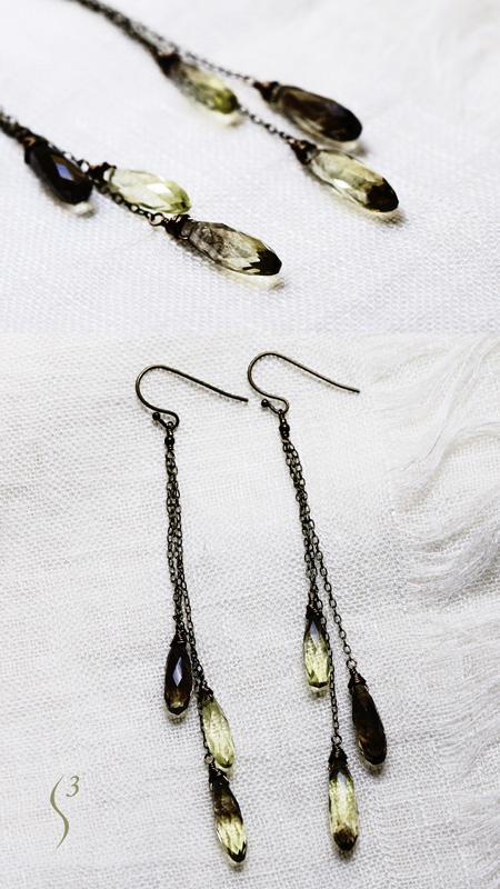 レモンクォーツとスモーキークォーツのバイカラー耳飾り
