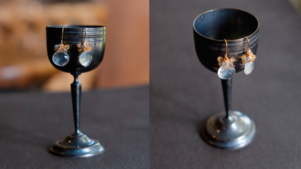 セイロンムーンストーンとインペリアルトパーズとラブラドライトの耳飾り