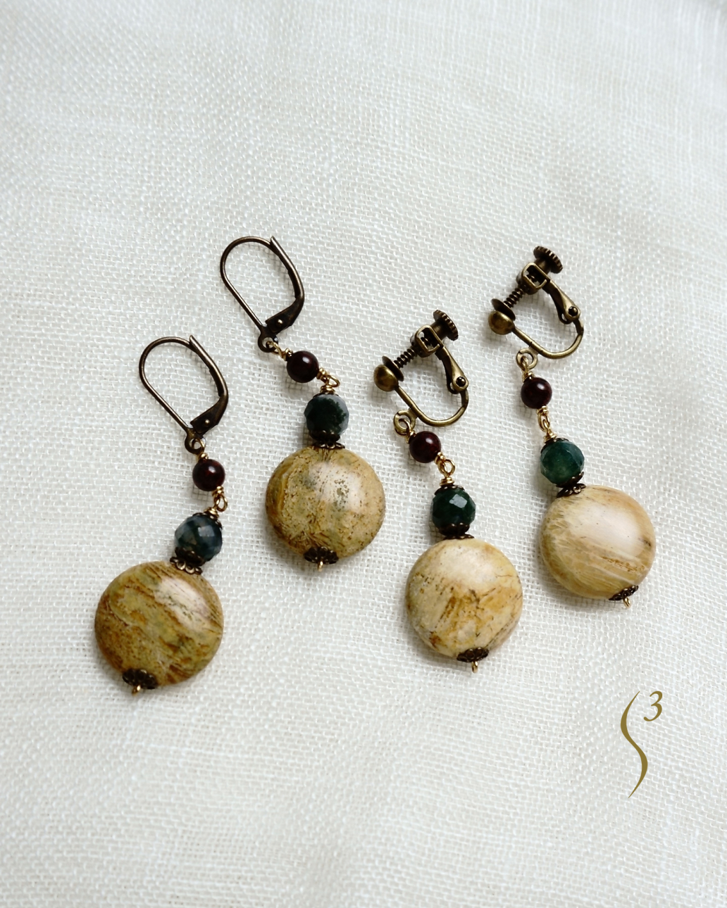 緑色が濃いモスアゲートと赤茶色のポピージャスパーを添えました