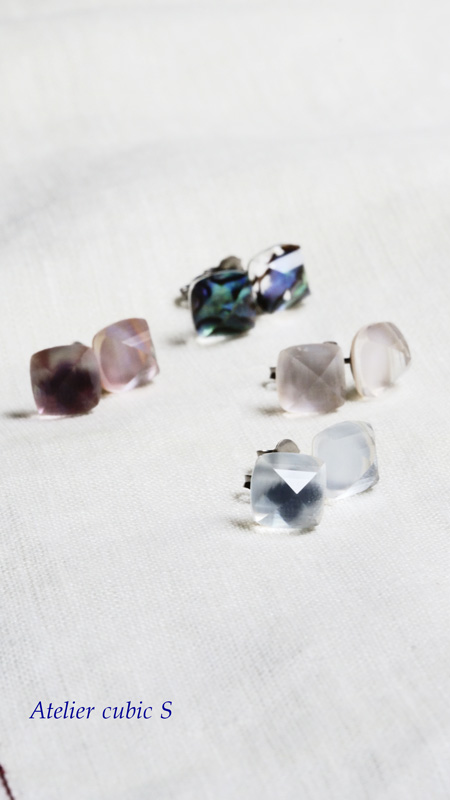 イヤリングもあります。金具に接着してあるため、イヤリングの場合は向きが固定になります。ちなみに素材の角度は、素材の四辺が水平&垂直です。←伝わるかしら?もっと良い表現方法が見つかり次第訂正します…語彙力!