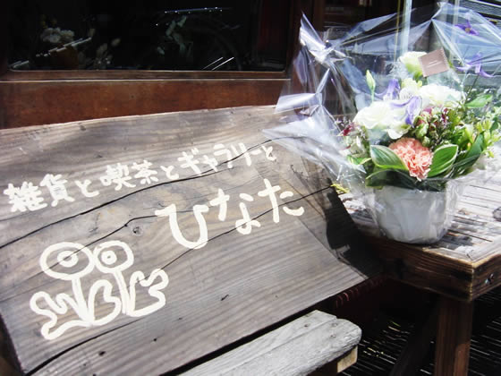 さすがに個展を目当てにおみえになる方はいらっしゃいませんでしたが、ひなたさんの常連のお客さまは「今日はやってるのね~」と楽しそうに入ってこられます。この数日間在廊していて感じたのは、ひなたさんがたくさんの人に愛されているお店なんだということ。「好きよ」という言葉は無くても、オーナーさんとのおしゃべりの様子やお店を出られる時の雰囲気でわかります。「私もこんなお店になりたい」と、ちょっとおかしな言葉が頭をよぎった一日でした。