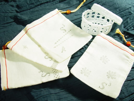 「もういらんってぇ」と言う声が聞こえる前に何とかしたいと考えていたのですが、ある日素敵なお店で味のあるポーチ(きんちゃく)を見つけました。大阪の南船場にあるgattoさんです。お聞きすると無地のポーチにオーナーさんがご自分でペイントされているそうで、厚かましくも「S3]を入れていただけるようにお願いしたんです。勝手なお願いにもかかわらず、快くお引き受け下さって感謝感謝です。お引き受け頂いただけでもありがたいのに、丁寧に好みの柄を聞いて下さったのですが「S3」のマーク以外のデザインはお任せしました。お店のセンスはもちろん、ご本人の人柄もとても素敵だったので、「お任せした方が仕上がりが良いはず!」って思ったんです。そしたら大正解!かわいらしいデザインに仕上がりました。写真はほんの一部。まだまだ色々な柄があります。ローテーションで数枚ずつご用意しておきますね。