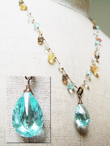 誕生石シリーズでは無いけれど、昨年のトパーズのイヤリング&ピアスとお揃いのネックレスをご紹介します。できあがりの価格よりもデザインを重視して、思いっきり好きな様に石を使って制作したものです。インペリアルトパーズ・ホワイトトパーズ・ブルートパーズ・スモーキークオーツをシルクの糸で結んでいきました。ブルートパーズのトップは取り外せるようになっています。トップはとにかくカットが美しいので、一度ご覧いただきたくてあーとぼっくすに並べておきました。気軽に買って下さいと言える価格ではございませんので、あくまでもご覧いただく為のご紹介です。たまにこんなことをすると快感なわけで、その空気が作品からもにじみ出ている気がしています。