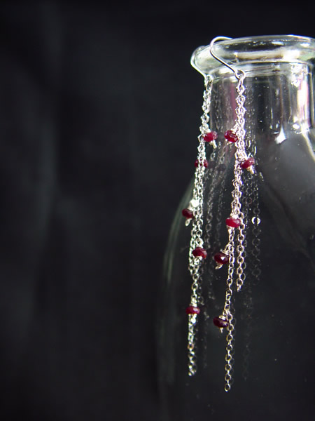 今回7月の誕生石の為に、1本の糸にピンクサファイアからルビーへのグラデーションで通ったものを購入しました。石屋さんで「ここまではルビーです」「この辺は微妙です」「ここからはピンクサファイアです」と教えていただきました。この「ここまではルビーです」だけを今回は使用しています。誕生石シリーズなので「ルビー」だけの方が良いかなと思いましたので・・・。数を使いすぎたのでちょっぴりお高めです。ごめんなさい。